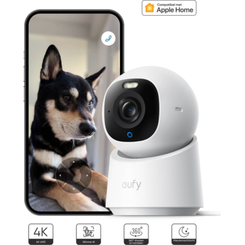 De Eufy E30 werkt zonder HomeBase en heeft geen abonnement nodig. Beelden worden lokaal opgeslagen op een microSD-kaart tot 128 GB (niet inbegrepen), zodat alles privé blijft. De camera sluit je aan via wifi en werkt met Apple HomeKit, waardoor hij makkelijk in je slimme huis past. Zo combineer je betrouwbare beveiliging met gemak, zonder maandelijkse kosten of ingewikkelde instellingen.