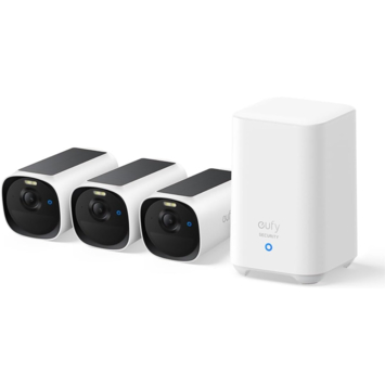 Alle beelden worden lokaal opgeslagen via de meegeleverde HomeBase 2. Je krijgt 16 GB interne opslag, uitbreidbaar tot maar liefst 16 TB met een externe harde schijf (niet meegeleverd). Beelden bekijk en beheer je eenvoudig in de Eufy-app of met spraak via Apple HomeKit, Alexa of Google Assistant. Let op: de EufyCam E40 werkt niet zonder HomeBase. Deze set bevat een HomeBase 2 en drie camera’s, klaar als hoofdinstallatie voor jouw slimme beveiligingssysteem – zonder abonnementskosten.