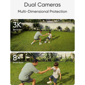 Beveilig je tuin of oprit met de Eufy Solo Cam E340. Deze weerbestendige camera kan maar liefst 360 graden draaien. De camera beschikt over een dubbele camera waarmee tot 8x inzoomen mogelijk is. Stel via de app de slimme verlichting met helderheid van 2000 lumen in. Hierdoor pas je het licht aan naar jouw behoefte. Zo kun je de lampen gebruiken als verlichting in de nacht, of alleen inschakelen wanneer er beweging wordt gedetecteerd. De camera wordt bedraad aangesloten waardoor opladen niet nodig is. De camera kan 24/7 opnemen, zodat je nooit een moment mist.