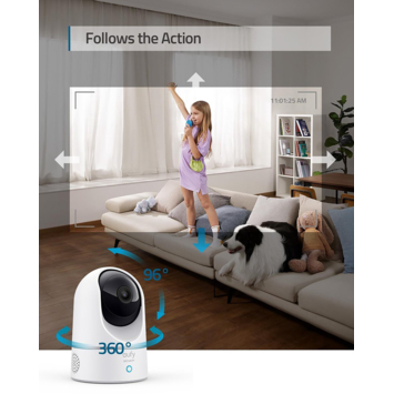 De Eufy Indoorcam is een beveiligingscamera die jou en jouw familie beschermt met oog voor jouw privacy. De camera beweegt bij beweging automatisch mee, zodat je niks mist. De beeldkwaliteit van de camera is 2K, zo ben je altijd verzekerd van scherp beeld. Via de app stel je gemakkelijk activiteitszones in waardoor je alleen relevante meldingen ontvangt. Je ontvangt een melding bij beweging of wanneer de baby huilt. Met geavanceerd nachtzicht kun je ook ’s nachts goed in de gaten houden wat er gebeurd. De camera werkt bedraad, dus de batterij hoeft niet te worden opgeladen.