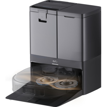 De Eufy X10 Pro Omni biedt een handige alles-in-één-oplossing. De dweilen worden automatisch gereinigd met schoon water en gedroogd bij 45 °C om geurtjes en bacteriën te voorkomen. De vuilnisbak leegt zichzelf in een 2,5 l stofzak, die slechts om de twee maanden vervangen hoeft te worden. Met een 3 l schoonwaterreservoir kan de stofzuiger een vloeroppervlak van 150 m² dweilen zonder bijvullen.