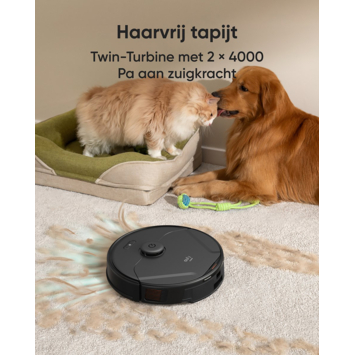 - De slimme lasernavigatie vermijdt obstakels in huis en maakt een kaart van je huis waardoor de robot niks mist