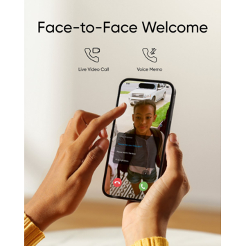 Wanneer er iemand aanbelt, ontvang je direct een videogesprek op je telefoon, zodat je snel kunt reageren, waar je ook bent. Ben je niet thuis? Geen probleem! Je kunt spraakberichten instellen om bezoekers te laten weten dat je hen gehoord hebt. De deurbel zorgt ervoor dat je altijd in contact kunt blijven met je gasten.