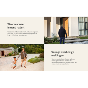 De Eufy Video Deurbel Dual 2 Pro Uitbreiding beschikt over 2 camera’s. Deze deurbel uitbreiding sluit je gemakkelijk aan op jouw bestaande Homebase 2 of 3. Met een camera onder een lage hoek zijn er geen blinde vlekken en heb je volledig zicht op jouw voordeur. De geavanceerde PIR- en radarbewegingssensoren kunnen zowel verre als nabije objecten onderscheiden en brengen het aantal valse alarmen met 95% terug. Houd pakketten in de gaten: Met twee camera's, waarvan 1 camera naar beneden is gericht, kunnen pakjesdieven detectie niet omzeilen. De sensoren herkennen pakketten en sturen je een bezorgingsbericht en een ophaalherinnering mocht je het vergeten.