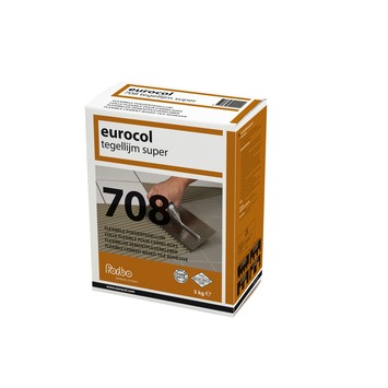 De Eurocol poeder tegellijm super 708 is gemakkelijk aan te maken met leidingwater en kan binnen toegepast worden. Je kunt deze tegellijm gebruiken voor het verlijmen van keramische wand- en vloertegels, mozaïek en vlak donkergekleurd natuursteen. Deze tegellijm is blijvend flexibel en kan hierdoor ook voor houten vloeren worden toegepast. Het verbruik van deze lijm is circa 1,75 tot 4 kg per vierkante meter afhankelijk van de vlakheid van de ondergrond en het type tegel. De lijm wordt geleverd in een verpakking van 5 kg.