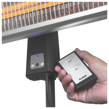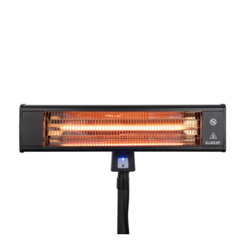 Geniet nog meer van het buitenleven met de strakke en mobiele Eurom TH1800S terrasverwarmer. Zijn stijlvolle design en het gemak van een standvoet maken hem perfect voor iedere plek op je terras of balkon. De krachtige 1800 Watt carbon lamp verwarmt zo een middelgrote buitenruimte en maakt de avonden comfortabeler. Met de afstandsbediening bedien je de heater moeiteloos van een afstand. Bovendien is de verwarmer spatwaterdicht (IP24), dus weeromstandigheden vormen geen obstakel. De TH1800S is jouw partner voor warme avonden.