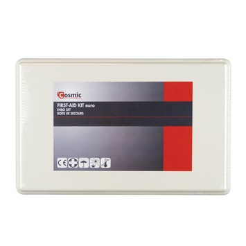 Met de Europese EHBO set ga je altijd goed voorbereid en veilig de weg op. De Europese EHBO set bestaat uit 3 steriele gaasjes van 5x5 centimeter, 2 elastische windsels van 400 x 6 centimeter, elastisch windsel 4 meter x 8 centimeter, schaar, pincet, paar handschoenen, 20 pleisters assorti, 5 wondpleisters, hechtpleister 100x2,5 centimeter, 4 alcoholdoekjes, driekante doek en een EHBO-handleiding