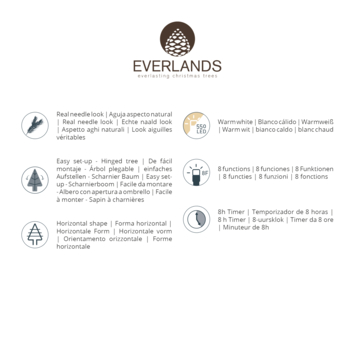 De Everlands kunstkerstboom Grandis Fir 240 cm inclusief verlichting is een feestelijke eyecatcher waarmee je moeiteloos een warme en sfeervolle kerstsfeer in huis haalt. Deze luxe kunstboom heeft een volle en natuurlijke uitstraling dankzij de 98 takken met 2935 tips en de realistische mix van PE en PVC naalden. De boom is voorzien van warm witte micro LED-verlichting, die je eenvoudig instelt met één van de acht verschillende lichtfuncties. De takken zijn via een scharniersysteem aan de stam bevestigd en vallen vanzelf in een mooie natuurlijke vorm zodra je de boom uitklapt. Met een hoogte van 240 centimeter en een diameter van 162 centimeter is dit een indrukwekkende boom die perfect tot zijn recht komt in een ruim interieur. De stevige voet is inbegrepen en de boom is geschikt voor binnengebruik. Klaar om te decoreren en te genieten van het eindresultaat. Registreer de boom online en ontvang twaalf jaar garantie.