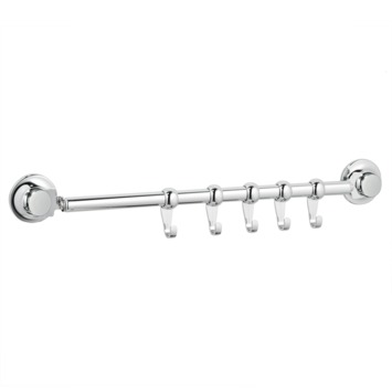 De Everloc handdoekrek 50 cm chroom met 5 haken is een handdoekrek dat je gemakkelijk bevestigd zonder de muur te beschadigen. Met het gepatenteerde vacuüm systeem van Everloc is schroeven en boren niet meer nodig. Door de draaiknop trekt de zuignap vacuüm en zit deze meteen muurvast. Ideaal voor in een huurhuis waar je vaak niet in de muren mag boren. Het Everloc systeem laat geen sporen na en blijft toch perfect hangen. Door de chroom afwerking is dit hoekrek tijdloos en past het bij andere badkameraccessoires.