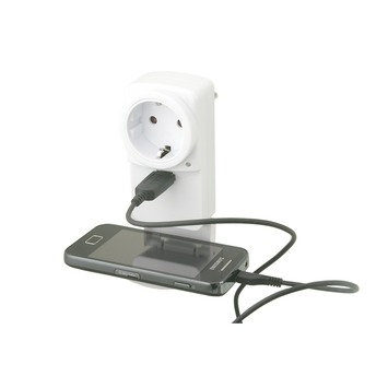 Deze stekker met randaarde is tevens voorzien van een USB aansluiting. Zo heb je altijd een aansluiting bij de hand voor het opladen van smartphone, tablet, enzovoort.
