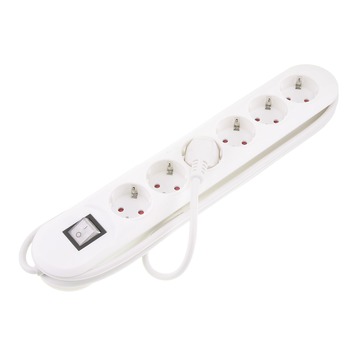 Exin stekkerdoos 6-voudig met randaarde wit, voor het aansluiten van meerdere elektrische apparaten op één contactdoos. Deze witte stekkerdoos heeft 2 geaarde stopcontacten, een aan-uitknop en een 2,5 meter lange snoer. Met een belastbaar vermogen tot 2500 watt kun je meerdere elektrische apparaten op deze 6-voudige stekkerdoos aansluiten.