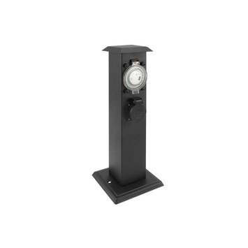 Exin tuinpaal met 3 contactdozen RA en timer zwart spatwaterdicht