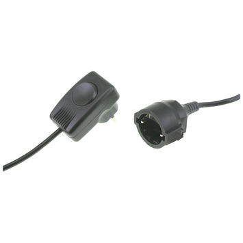 Exin verlengsnoer met randaarde en schakelaar zwart, voor het aansluiten van een elektrisch apparaat waarvan het snoer niet toereikend is tot het stopcontact. Het 2 meter lange witte verlengsnoer heeft een vermogen van 1300 watt.