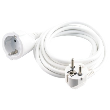 Exin verlengsnoer met randaarde wit 5 m, voor het aansluiten van een elektrisch apparaat waarvan het snoer niet toereikend is tot het stopcontact. Het 5 meter lange witte verlengsnoer heeft een belastbaar vermogen tot 2500 watt.