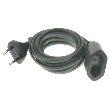 Exin verlengsnoer zwart 3 m, voor het aansluiten van een elektrisch apparaat waarvan het snoer niet toereikend is tot het stopcontact. Het 3 meter lange zwarte euro verlengsnoer heeft een belastbaar vermogen tot 575 watt.