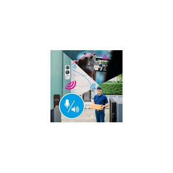 • Ingebouwde microfoon en luidspreker: Praat met en luister naar uw bezoekers, waar u ook bent