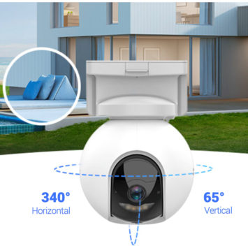 De Ezviz HB8 beveiligingscamera voor buiten draadloos 2K+ geeft je een duidelijk beeld van wat er rondom je huis gebeurt. Dankzij de 2K+ resolutie zie je elk detail haarscherp. De camera draait en kantelt automatisch en werkt op een batterij die tot 210 dagen meegaat. Met 32 GB interne opslag hoef je geen aparte geheugenkaart of abonnement aan te schaffen.