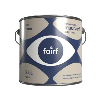 Met de Fairf muurverf extra mat hare 2,5 liter schilder je muren en plafonds binnen op een bewuste manier. De verf is namelijk plantaardig en daardoor minder belastend voor je leefomgeving. Omdat hij watergedragen is, werk je zonder sterke geur. De extra matte afwerking geeft een rustige uitstraling en je brengt de verf makkelijk en streeploos aan. Hij hecht goed op gips en steen. Dankzij de hoogste schrobvastheid kun je de muren goed schoonhouden zonder schade. De verf is bestand tegen bacteriën die zich kunnen vormen in vochtige ruimtes. Na 20 minuten is de muur stofdroog, waardoor je snel verder kunt schilderen. De verf gebruik je het beste tussen 10 en 30 graden. Eén liter verf dekt 10 vierkante meter, dus met 2,5 liter schilder je ongeveer 25 vierkante meter. Zo blijven je muren langer netjes.