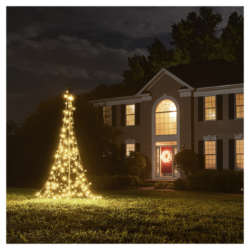 Dankzij de innovatieve positionering van de lampjes en het warm witte licht, ontstaat er een prachtige vierkante kerstboomvorm die je vrijwel overal in je tuin kunt plaatsen.