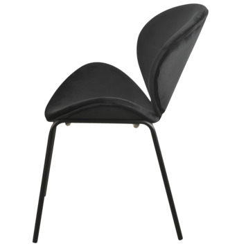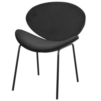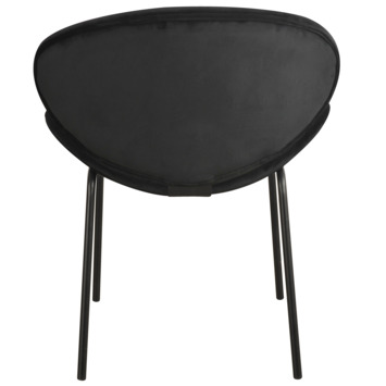 Eetkamerstoel Sophie is gestoffeerd in een zwart fluweel polyester stoffering met vier metalen poten. De stoel heeft een unieke luxe uitstraling en staat leuk in meerdere ruimtes in het huis. De stoel heeft een ovaal gevormde zitting die heerlijk zit.