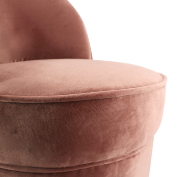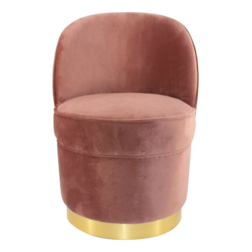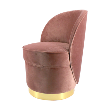 Deze fluwelen stoel met vintage look is de eye catcher in je woonkamer. Fluweel roze met een messing onderrand, wat een luxe! De kleur is zacht roze. De afmetingen zijn (HxBxD) 75x52x58 cm.