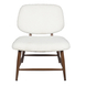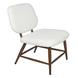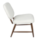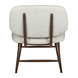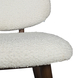 De fauteuil is uitgevoerd met een houten frame, de zitting en rugleuning zijn bekleed met een crèmekleurige bouclé stof.