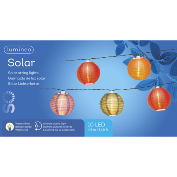 Feestverlichting 10 solar lampionnen LED 4,5 m color