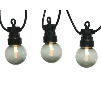 Maak jouw woonruimte of terras helemaal hip en feestelijk met deze moderne LED snoer met rookglas lampen. Dit snoer is voorzien van een transformator met een aanloop van 5 meter waarna de lampen over nog eens 4,5 meter snoer zijn verspreid. Door hun beschermingsniveau van IP44 (spatwaterdicht) zijn het perfecte buitenlampen, die zeker niet misstaan aan bijvoorbeeld een (party)tent. De 20 lampen prachtige lampen maken elke feest helemaal compleet.