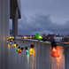Maak een extra gezellig en sfeervol feestje van alle sociale activiteiten met dit trendy, decoratieve enenergiezuinige feestverlichtingsnoer. Dit duurzame LED lichtsnoer met 20 multicolor lampjes -elk met 2 extra warmwitte 2200K LED lichtbronnen- is 4.75 meter lang. De verlichte bolletjes met E14 schoeffitting hebben een hoge lichtoutput gedurende de hele levensduur. De afstand tussen de LED lampjes is 25cm. De 2 LEDs per lichtbron zijn midden in de bol geplaatst voor maximale lichtspreiding. De lampjes zijn van kunststof en dus niet breekbaar. De kabelkleur is zwart. Het aansluitsnoer tot aan de eerste lichtbron is 10 meter lang, dus het snoer is eenvoudig zonder verlengsnoer op een stopcontact aan te sluiten. Het snoer is zeer energiezuinig met een verbruik van slechts 3.6W en heeft energielabel A. De ruime kabeldiameter garandeert een hoge trekbelasting. Het snoer kan binnen en buiten worden gebruikt (IP44 rating tegen vocht en stof). Het is niet geschikt voor gebruik in of onder water.