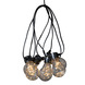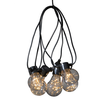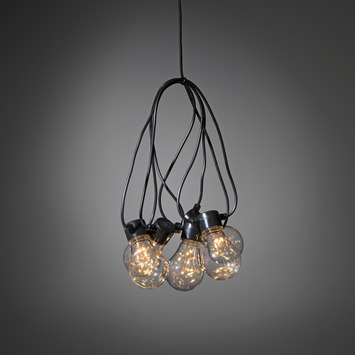 Breng je huis en tuin in een eenvoudig en snel in feestelijke stemming met dit 2 meter lange en energiezuinige LED feestverlichting lichtsnoer met 6u timer. Het snoer werkt op batterijen en kan dus overal flexibel en zonder stroomaansluiting binnen of buiten worden toegepast. Dit lichtsnoer met een hoge lichtopbrengst gedurende de hele levensduur is een 2 meter lang zwart lichtsnoer met in elke bol een 10 lamps extra warmwit lichtsnoer midden in de bol geplaatst voor maximale lichtspreiding. De afstand tussen de lichtbronnen is 50cm. De bollen zijn van kunststof en dus niet breekbaar. Het snoer heeft een batterijbox die zonder gereedschap geopend en gesloten kan worden en die corrosievrij is. Op de batterijbox is een schakelaar met 3 standen ingebouwd: 1=TIMER 6H / 2= on / 3 = OFF. Op stand 1 activeer je een 6-uurs timer: het snoer schakelt 6u in en vervolgens automatisch 18u uit. Dit is handig als het snoer buiten hangt. Op stand 2 schakel je het snoer permanent in, op stand 3 permanent uit. Het lichtsnoer werkt op 4x AA/LR6 batterijen (niet meegeleverd). De batterij box is spatwater en stofdicht (IP44) en geschikt voor binnen- en buitengebruik. Niet geschikt voor gebruik in of onder water. Het aansluitsnoer van batterijbox tot aan de eerste lichtbron is 3 meter lang.