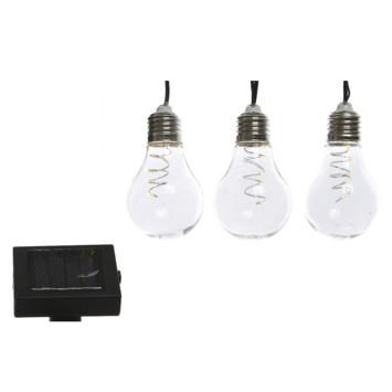 Deze decoratieve verlichting is een echte eyecatcher. De geïntegreerde LED lampjes hebben een originele vorm. De lampjes zijn verspreid over 4,5 meter. Het aanloopsnoer bedraagt 5 meter en voorziet om de 50 cm de snoer van een sfeervol lampje. Met de bijgeleverde batterijen heb je in een mum van tijd jouw terras of balkon omgetoverd. Batterijen leeg? Niet getreurd deze lampjes zijn ook voorzien van een solar paneel, zo zorgt de zon ervoor dat jij niet zonder licht komt te zitten.