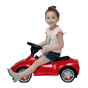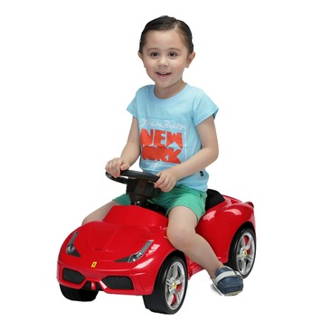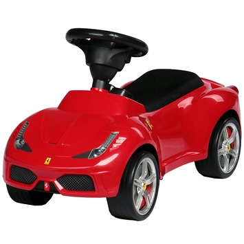 De Ferrari 458 kunststof loopauto is gemaakt onder licentie van Ferrari. Deze kleine Ferrari is voorzien van een comfortabele zitting, geluidsarme wielen met rubberen loopvlak en een echt werkende claxon (werkt op 2 AA batterijen, niet bijverpakt). Maximaal draagcapaciteit 20 kg. Afmetingen (lxbxh): 70x30x38 cm. Adviesleeftijd vanaf 18 maanden.