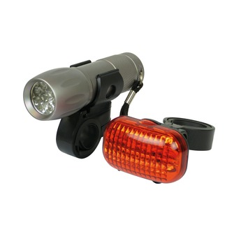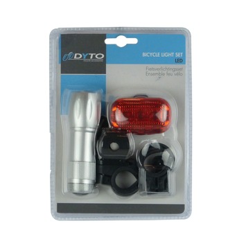 De fietsverlichtingsset led bestaat uit een voorlicht met 1 continu functie en een achterlicht met 1 continu functie en 2 knipperlicht functies. Het voorlicht werkt op 3x AAA/LR03 batterijen, het achterlicht werkt op 2x AAA/LR03 batterijen. De batterijen worden meegeleverd. Met de fietsverlichtingsset led kun je zien en gezien worden.