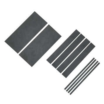 - 2 stroken pvc van 55x128cm. Uit één strook kunnen 2 treden gehaald worden, waardoor uit de hele set 4 streden gehaald kunnen worden.