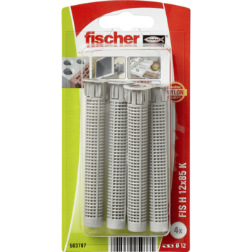 Fischer FIS H 12x85 K injectiehulzen 4 stuks zijn handig ter bevestiging van: hekwerk, leuningen, gevelsystemen, luifels, televisie en houten constructies. De injectiehulzen zijn 85mm. Gebruik voor het boren van het gat een boor van Ø12mm. Verpakt per 4 stuks.