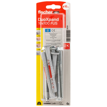 De fischer Constructieplug DuoXpand met dubbele verankeringsdiepte is gecertificeerd voor meervoudige bevestiging van niet-dragende systemen in beton, metselwerk én cellenbeton. Dankzij de speciale geometrie en het gebruik van verschillende kunststoffen, past de plug zich perfect aan de ondergrond aan. De DuoXpand met verzonken kop is zeer geschikt voor het bevestigen van houten aanbouwdelen in metselwerk of beton.
