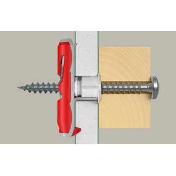 Fischer duotec hollewandpluggen 10 S PH K NV. Deze krachtige plug (tuimelplug) met versterkt kunststof en zacht nylon staat hogere belastingen toe dan de gangbare hollewand pluggen.