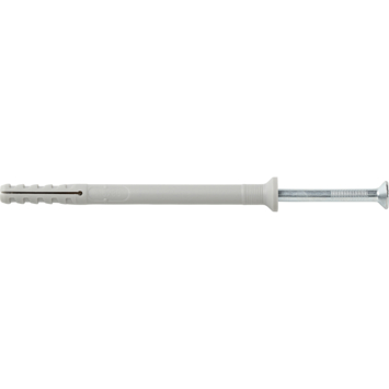 Deze Fischer-nagelplug N6x80Z gebruik je voor het monteren van houten regelwerk op verschillende materialen. Denk aan betonnen wanden, wandverbindingen en metalen profielen. Gebruik voor het boren van het gat waarin je de nagelplug aanbrengt, een boor met een diameter van 6mm. Vervolgens breng je de 80mm lange nagelplug aan en schroef je de schroef van 85mm met een diameter van 4mm erin. Na montage is deze nagelplug met een lengte van 8cm, afhankelijk van het materiaal waarin je de plug bevestigt, te belasten tot maximaal 20kg. Je koopt de Fischer-nagelplug N6x80Z per 50 nagelpluggen.