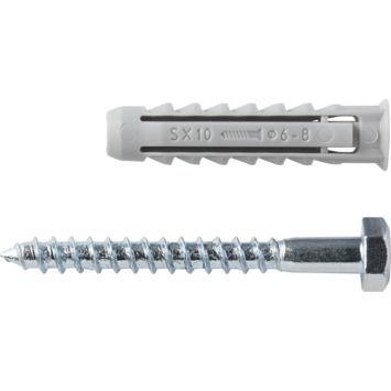 Fischer SX 10x50 S houtdraadbout en plug met kraag 5 stuks zijn van fischer waarmee je alles gemakkelijk ophangt. Het is van toepassing op verschillende soorten materialen zoals beton, gripsplaten en natuursteen. Maximaal te belasten tot 100 kg afhankelijk van het materiaal. Gebruik voor het boren van het gat een boor van Ø10mm. De plug is 50mm lang, en de houtdraadbout is 65 mm en Ø7mm. Geleverd als 5 houtdraadbouten inclusief pluggen met kraag.