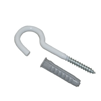 Fischer SX 6x30 RH N plug met schoefhaak wit 4 stuks zijn schoefhaken met pluggen van Fischer waarmee je alles gemakkelijk ophangt. Het is van toepassing op verschillende soorten materialen zoals beton, gripsplaten en natuursteen. Maximaal te belasten tot 5 kg afhankelijk van het materiaal. Gebruik voor het boren van het gat een boor van Ø6mm. De plug is 30mm lang, en de haak is Ø30mm. Geleverd als 4 schroefhaken in de kleur wit inclusief pluggen.