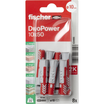 Fischer Universeelplug DuoPower 10x50mm 8 stuks