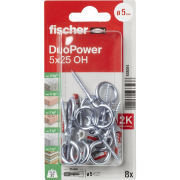 Fischer Universeelplug DuoPower 5x25mm met schroefoog 8 stuks