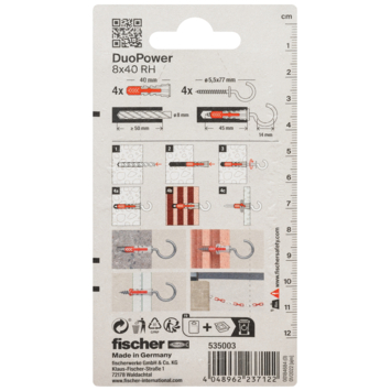Fischer duopower 8x40mm RH K NV. Deze sterke alleskunner bestaat uit 2 componenten en is geschikt voor elke ondergrond. Met 3 werkingprincipes is dit de ideale plug voor elke ondergrond en het is duidelijk voelbaar wanneer de schroef goed is aangedraaid.