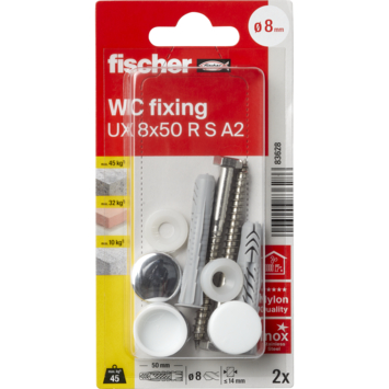 Fischer wc-bevestigingsset WC N K. De bevestigingsset is speciaal gemaakt voor het ophangen van een toilet