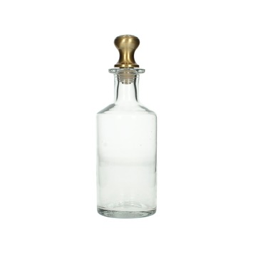 Deze fles 8x8x23 cm van glas met gouden metalen dop is een mooi decoratief item in je interieur. Gebruik deze flesjes in de keuken voor bijvoorbeeld het decoratief bewaren van etenswaren.