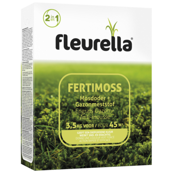 Deze minerale gazonmeststof met 4 % stikstof en ijzer heeft een snelle werking tegen mos in het gazon. Deze meststof in fijne korrelvorm zorgt ervoor dat het mos heel snel zwart wordt en afsterft. Het afgestorven mos kan verwijdert worden door te harken of verticuteren vanaf 7 dagen na de behandeling. Een herbehandeling kan nodig zijn bij sterke mosgroei of terugkeer van het mos. Fertimoss bevat ook het voedingselement stikstof dat de groei van het gras bevordert waardoor de kale plekken in het gazon, die achterblijven na het afsterven en/of uitharken (verticuteren) van het mos, sneller dichtgroeien.