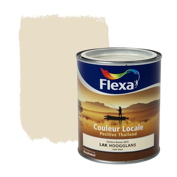 Flexa Couleur Locale lak Positive Thailand breeze hoogglans 750 ml is een kras- en stootvaste watergedragen lak met een hoogglans finish en uitstekende dekking. Flexa Couleur Locale is verkrijgbaar in 5 verschillende kleurlijnen, iedere kleurlijn (landenthema) bestaat uit een aantal geselecteerde kleuren die uitstekend met elkaar te combineren zijn. De kleur positive breeze is één van de gouden geeltinten uit de kleurlijn Positive Thailand. De inhoudsmaat is 750 ml.