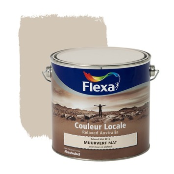 Flexa Couleur Locale muurverf Relaxed Australia mat Mist 2,5 l is een vochtregulerende muurverf voor binnen. Met de vijf kleurlijnen van Flexa Couleur Locale is het kiezen van nieuwe kleuren voor je interieur heel eenvoudig. Want binnen dezelfde kleurlijn kun je alle kleuren eenvoudig met elkaar combineren voor een sfeervol, eigentijds en werelds interieur. Maak met de authentieke kleuren van Flexa Couleur Locale Relaxed Australia een evenwichtig en stoer interieur waarin je veilig thuis komt en heerlijk kunt ontspannen. Flexa Couleur Locale muurverf is minder belastend voor het milieu en je gezondheid (EcoSure). Je kunt het met een blokwitter of roller aanbrengen op bijvoorbeeld muren, plafonds, schoon metselwerk, papierbehang, gipskarton en (glad) pleisterwerk. Het heeft een uitstekende dekking en is goed reinigbaar. Hierdoor bereik je met Flexa Couleur Locale muurverf Relaxed Australia snel een mooi resultaat dat ook lang mooi blijft.