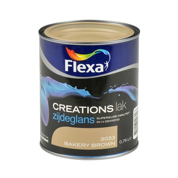 Flexa Creations lak zijdeglans bakery brown 750 ml is een uitzonderlijk kras- en stootvaste, waterverdunbare zijdeglanslak voor binnen en buiten. Met de unieke en speciaal ontworpen kleuren van Flexa Creations kun je kleur geven aan je verbeelding. De verf is makkelijk verwerkbaar en toepasbaar op hout, metaal en harde PVC. Je geeft daarmee onder andere kozijnen, muren of trappen in een handomdraai een verrassende, nieuwe kleur. Alle Creations producten zijn geurarm en snel droog waardoor je ze probleemloos binnenshuis kunt gebruiken. Daarnaast hebben ze een uitstekende vloei en zijn ze in één keer dekkend aan te brengen. Bovendien blijft Flexa Creations Lak hoogglans lak langdurig mooi en is goed reinigbaar waardoor je langdurig kunt genieten van je mooie hoogglanzende schilderwerk.