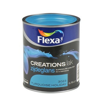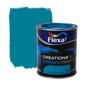 Flexa Creations lak zijdeglans turquoise holiday 750 ml is een uitzonderlijk kras- en stootvaste, waterverdunbare zijdeglanslak voor binnen en buiten. Met de unieke en speciaal ontworpen kleuren van Flexa Creations kun je kleur geven aan je verbeelding. De verf is makkelijk verwerkbaar en toepasbaar op hout, metaal en harde PVC. Je geeft daarmee onder andere kozijnen, muren of trappen in een handomdraai een verrassende, nieuwe kleur. Alle Creations producten zijn geurarm en snel droog waardoor je ze probleemloos binnenshuis kunt gebruiken. Daarnaast hebben ze een uitstekende vloei en zijn ze in één keer dekkend aan te brengen. Bovendien blijft Flexa Creations Lak hoogglans lak langdurig mooi en is goed reinigbaar waardoor je langdurig kunt genieten van je mooie hoogglanzende schilderwerk.